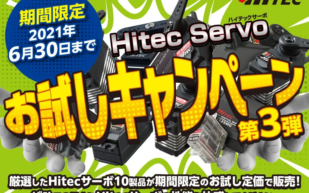 2021年6月30日まで Hitec Servo お試しキャンペーン第3弾開催中。