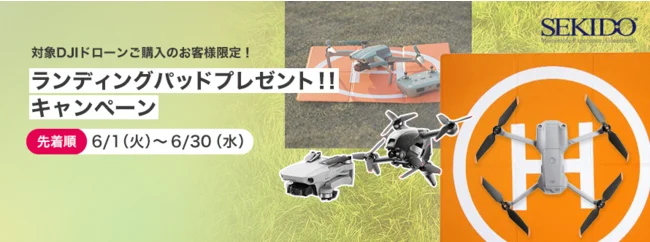 日本初のDJI正規販売代理店である株式会社セキド(本社:東京都国立市、代表取締役:大下貴之)では、2021年 6月 30日(水)までの期間に対象のDJI製ドローンを購入しアンケートにお答えいただいたお客さまに、世界中の DJI ユーザーに愛用される PGYTECH(ピージーワイテック)のランディングパッドを、数量限定・先着順でプレゼントする「ランディングパッド プレゼントキャンペーン」を開始いたしました。