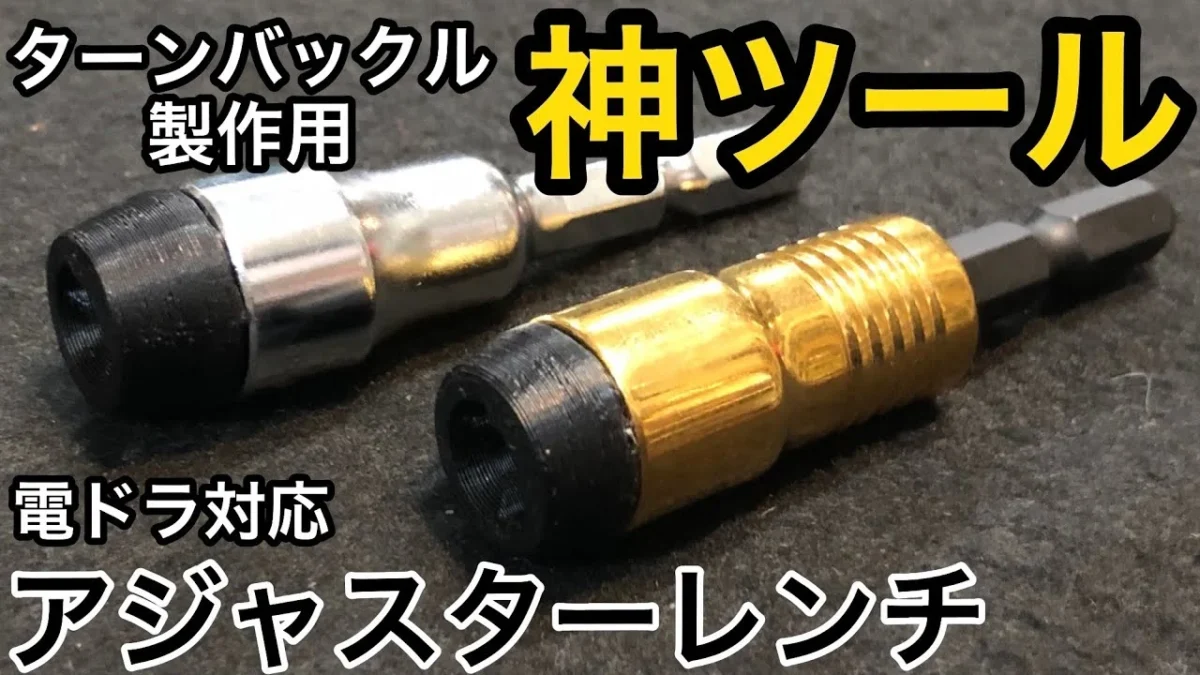ソケットレンチに3Dプリンター製の樹脂パーツが接着されており、電動ドライバーを使用して簡単にターンバックル製作が行える製品とのこと。