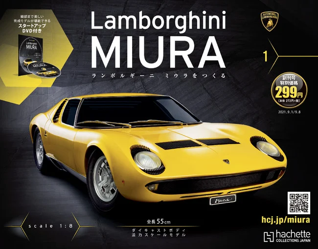 アシェット・コレクションズ・ジャパン株式会社は、毎号付属するパーツを組み立てると、柔らかで魅力的なボディラインに獣のごとき猛々しさを秘めたスーパースポーツカー「ランボルギーニ ミウラ P400S」の1/8スケール(全長55cm)という本邦初のスケールモデルが完成する『ランボルギーニ ミウラをつくる』を2021年8月25日(水)に創刊します。