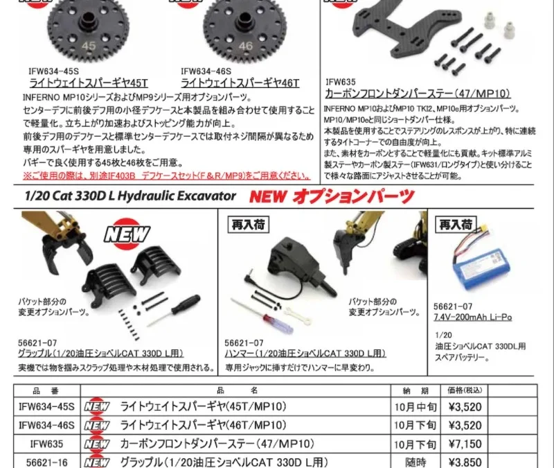 インファーノMP10 & 1/20油圧ショベル CAT 330D L用オプションパーツ 新登場!: