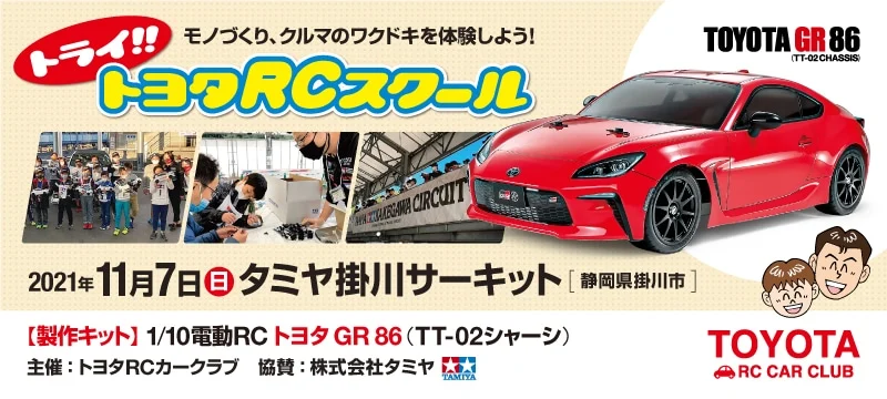 株式会社タミヤは2021年11月7日(日)にタミヤ掛川サーキットにおいて行われる「トライ!!トヨタRCスクール タミヤ掛川サーキット 11/7(日)開催!」に協賛することを発表いたしました。