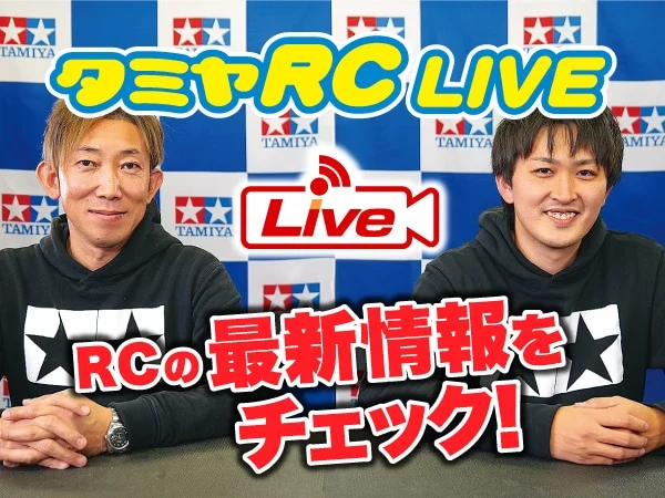 タミヤRCカーの最新情報をライブ配信!RC新製品情報からビギナー必見のセッティング方法、タミヤグランプリなどレース参加時の実践的アドバイスまで、とっておきのお役立ち情報をタミヤスタッフがお届けしますのでお見逃しなく!
