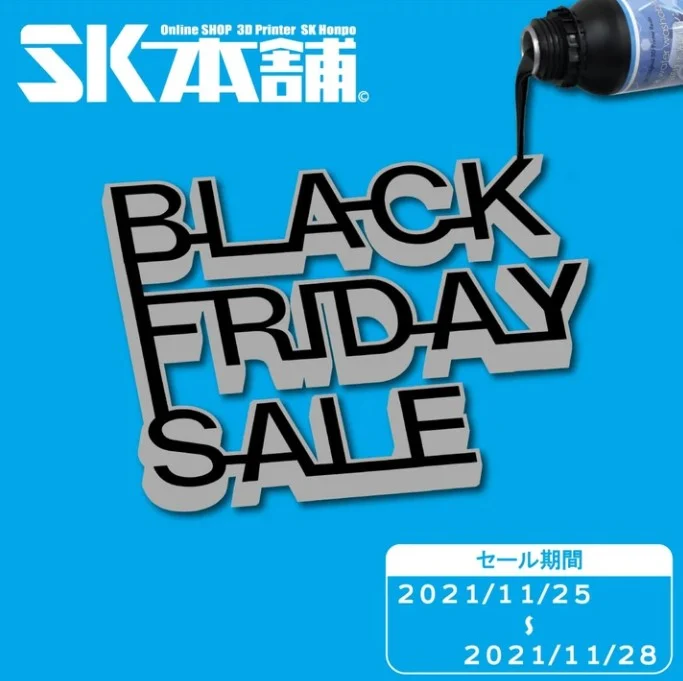 3Dプリンターやサプライの販売を手掛けるSK本舗は、2021年11月25日にブラックフライデーセール開催することを発表いたしました。開催期間は2021年11月25日~28日迄。