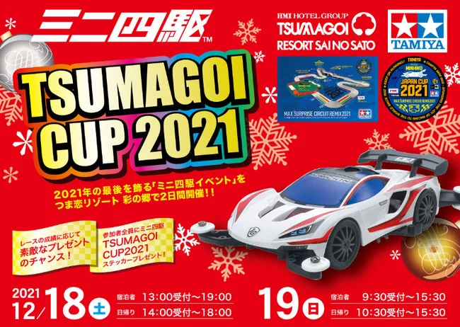 つま恋リゾート彩の郷(静岡県掛川市)では、2021年12月18日(土)・19日(日)の2日間、2021年の最後を飾るミニ四駆イベント TSUMAGOI CUP2021を開催する。