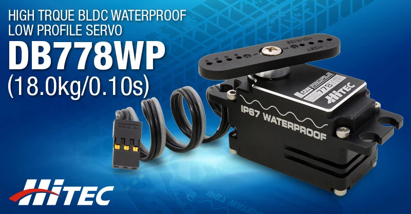 「DB778WP」は ブラックアルマイトのフルメタルケース を採用し、IP67基準クリアの完全防水仕様のトルクタイプ・ロープロサーボ。ブラシレスDCモーターを採用しハイレスポンスを実現。