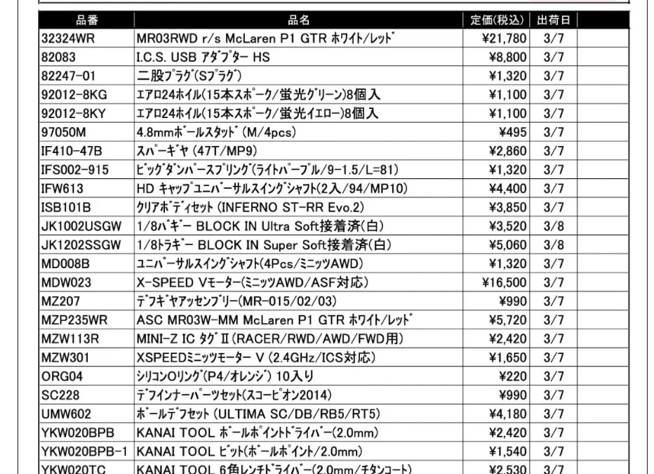 京商株式会社は「今週の出荷情報(2022年3月7日~3月11日)」 を発表いたしました。