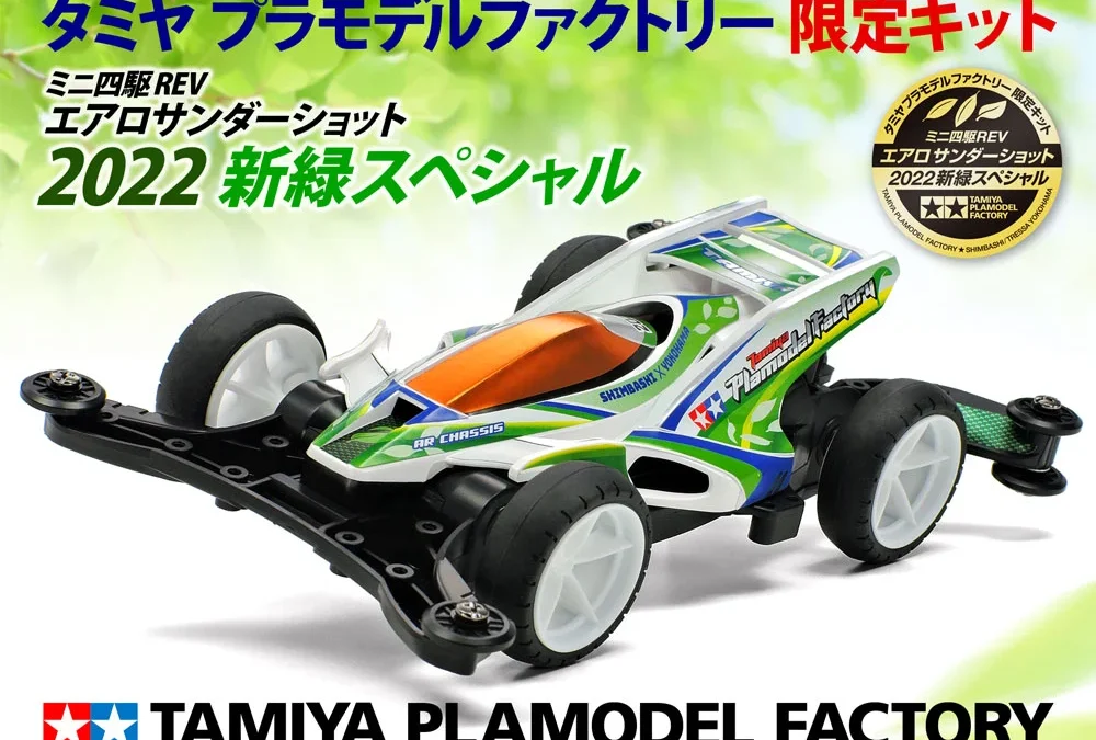 株式会社タミヤはタミヤ プラモデルファクトリー 限定キットとなる、春をイメージしたマーキングがさわやかな「ミニ四駆REV エアロサンダーショット 2022 新緑スペシャル」を発表した。