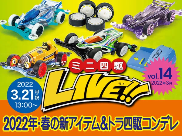 株式会社タミヤは2022年3月21日にタミヤミニ四駆LIVE Vol.14をライブ番組配信することを発表いたしました。