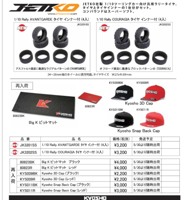 KYOSHO RC Information JETKO 1/10用ラリータイヤ 新登場! KYOSHOピットマット&キャップ 再入荷
