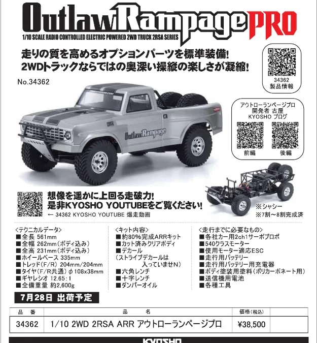 京商株式会社は「1/10 EP 2WDトラック アウトローランページプロの再入荷」 を発表いたしました。