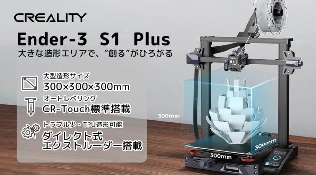 大型造形・TPU造形・オートレベリングに対応した3Dプリンター「Creality 3D Ender-3 S1 Plus」を
