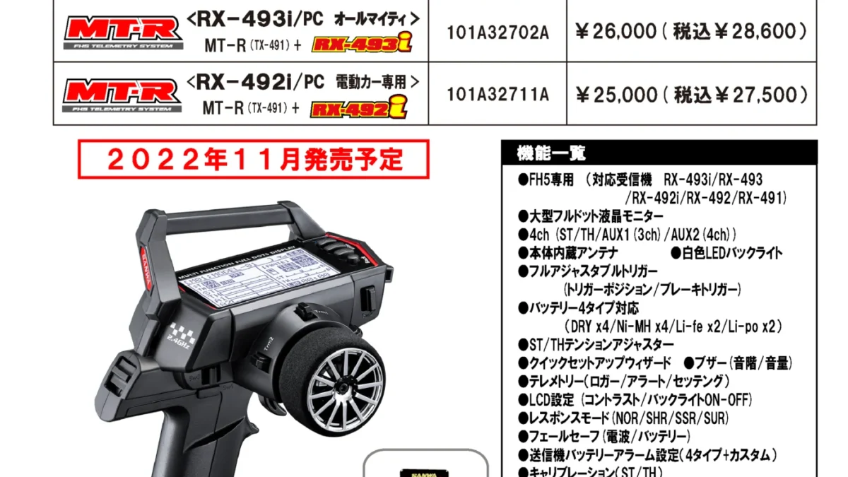 電動カー専用のRX-492i同梱版の2タイプがラインアップ。