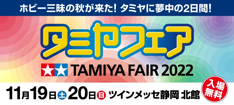 株式会社タミヤは2022年11月19日(土)と20日(日)にツインメッセ静岡 北館にて「タミヤフェア2022」を開催することを発表した。