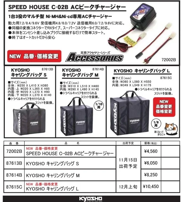 京商株式会社は「KYOSHO キャリングバック 各種 & C-02B ACピークチャージャー 再入荷」を発表いたしました。