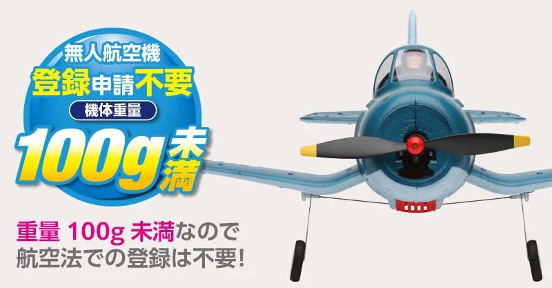 株式会社ハイテックマルチプレックスジャパンは航空法での登録が不要な、コミカルなフォルムが特徴である重量100g未満のエアープレイン機体「F4U コルセア」を発表した。