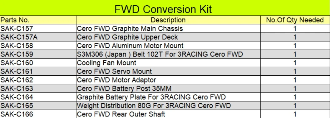 FWDバージョンとなる「CERO ULTRA FWD」にコンバートするためのパーツリストを公開した。