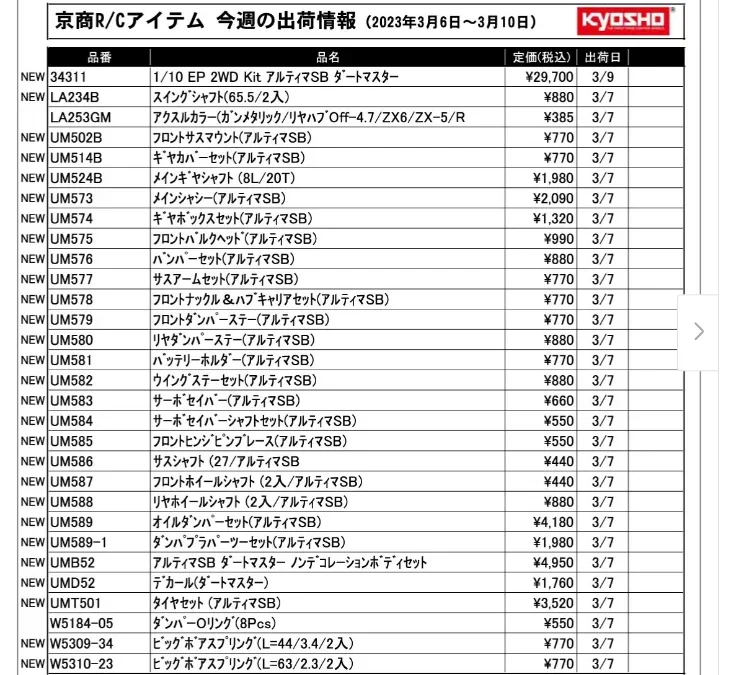 京商株式会社は「今週の出荷情報(2023年3月6日~3月10日)」 を発表いたしました。