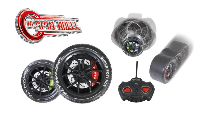特徴:えっ!タイヤが動く!?タイヤが回転・前進して、2通りの遊び方ができる摩訶不思議なRCスピンホイールが登場!!前進・回転でコロコロ転がって目的地にたどり着こう。ラジオコントロール操作でタイヤを自在に操れ!