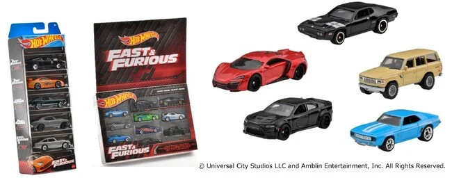 映画『ワイルド・スピード』シリーズに登場する劇中車を集めたベーシックカーの5台パック。『ワイルド・スピード』シリーズ1作目で、ドミニクの父の形見の車である「’70 ダッジ・チャージャー R/T」とブライアンが乗る「トヨタ・スープラ」を並ばせることで、1作目のレース対決を再現可能。その他にも「’67 カスタム マスタング」、「77 シェベル SS」、「アストンマーティン 1963 DB5」がセットになっている。
