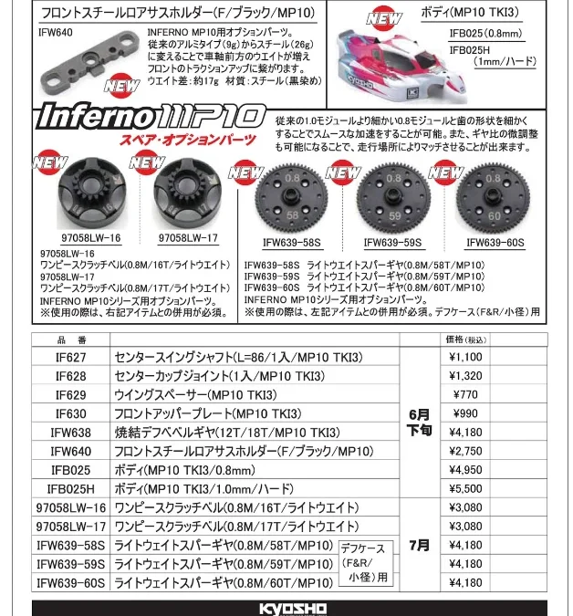 京商株式会社はインファーノ MP10シリーズ用 オプションパーツ新発売を発表いたしました。