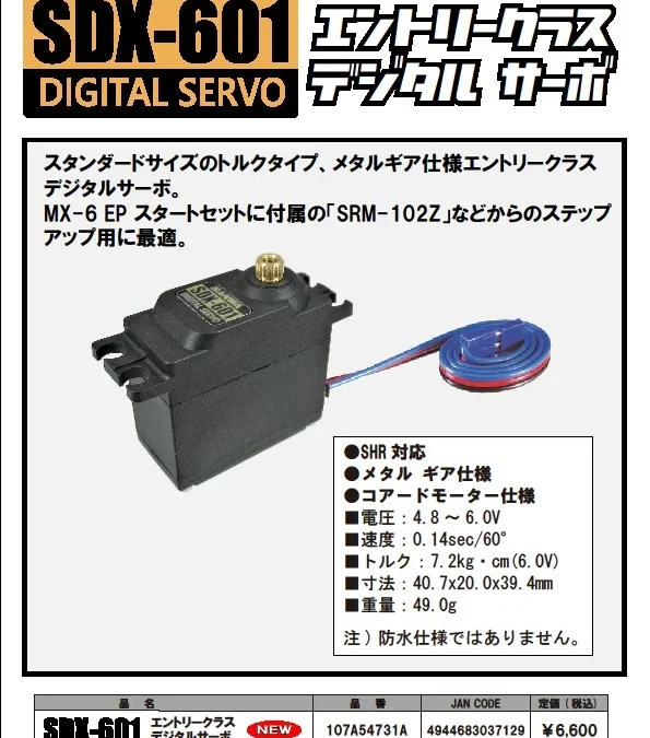 三和電子機器株式会社は2023年6月15日にエントリークラス デジタルサーボ「SDX-601」を発表いたしました。販売予定価格は6,600円(税込)