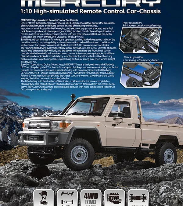 「KillerBody」代理店である流星株式会社は、KillerBody製新型クローラーシャーシ「MERCURY」の発売を発表した。販売予定価格はオープン価格。