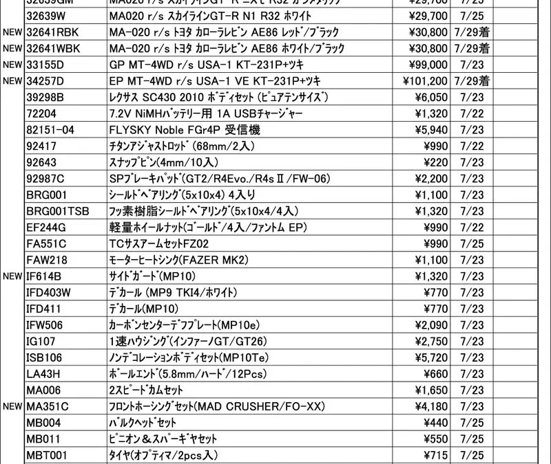 京商株式会社は「今週の出荷情報(2024年7月22日~7月26日)」を発表いたしました。