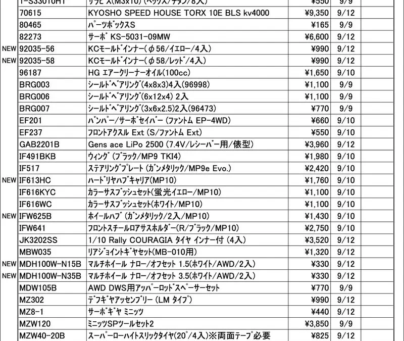 京商株式会社は「今週の出荷情報(2024年9月17日~9月20日)」を発表いたしました。