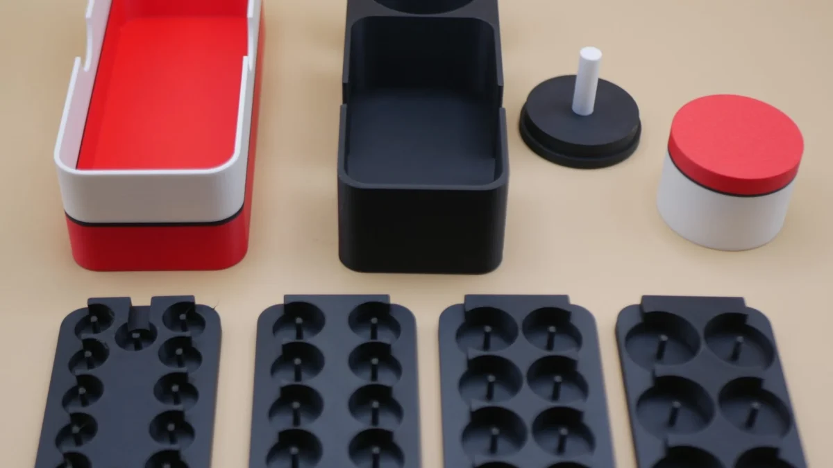 My RC Styleとのコラボレーション商品。 0.4モジュール67Tまでのピニオンギヤが38個プレート4枚と、 スパーギヤが7枚(AXON製品想定)が収納出来る専用ボックスと専用キャリングケースがセットになっています。My RC StyleとRDT Racingのオリジナルカラーバージョンから販売開始しました。スパーとピニオンはAXON製品の寸法で設計おり、高さ10mm以上のピニオンギヤは入りません。