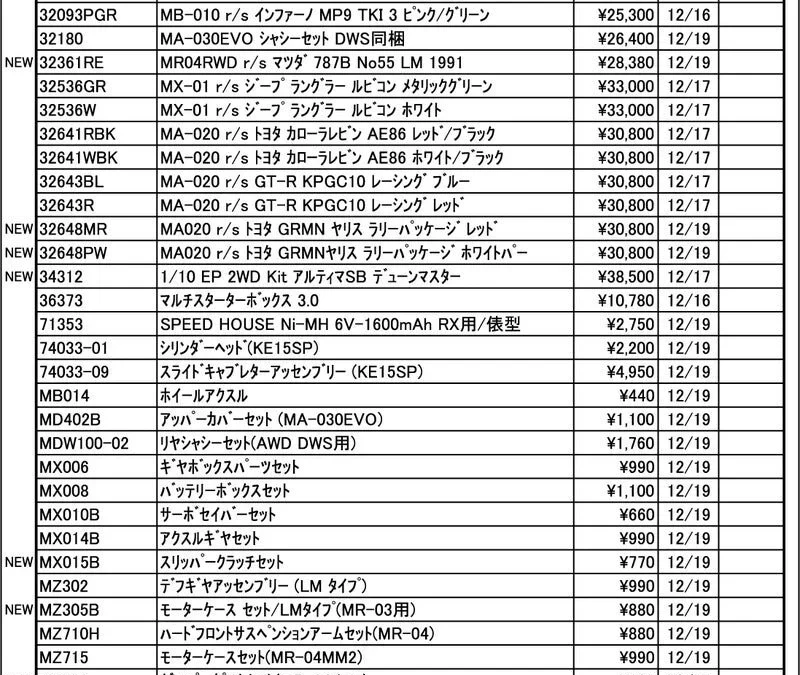 KYOSHO RC Information 今週の出荷情報(2024年12月16日~12月20日)