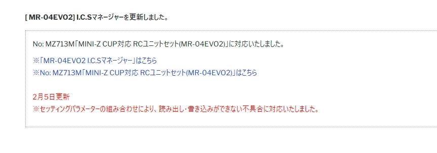 京商株式会社は2025年2月6日、同社Webサイトにて「[ MR-04EVO2] I.C.Sマネージャーを更新」を発表した。