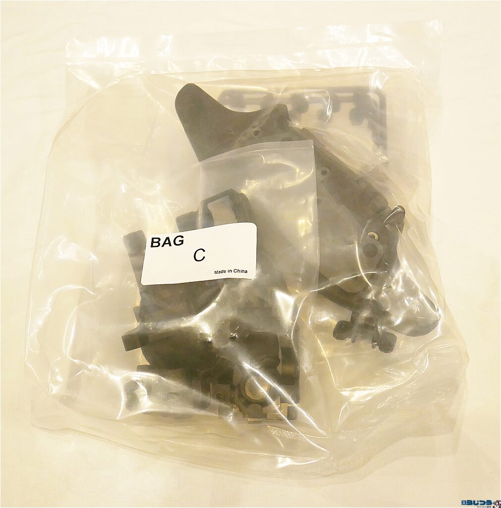 基本的なパーツはPTG-2Rを踏襲しておりますので、アフターパーツについても共通となります。なお、パーツバッグEがないのはメーカーの都合とのことで問題ありませんのでご安心ください。今回のツーリングカーモデルではダンパーがショートストロークモデルの専用パーツとなっていることや、それに関連するパーツが一部調整されてはいるとのことですが、基本的にはPTG-2R相当の装備となっておりますので、キット状態でほぼフルオプションという内容になっております。前後のギアデフについてもメタルギア仕様となっており、耐久性が高いパーツ選定となっております。大まかな仕様としては、リアモーター仕様のシャフトドライブ4WDとなっており、前後サスペンションはアッパーIアームのCハブを採用したオーソドックスな形式となっております。メーカーの担当者に伺ったところでは車格としてはミドルクラスのツーリングカーとのことです。