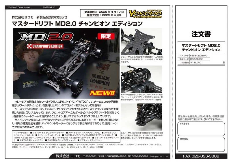 株式会社ヨコモ 「Yokomo Product Information – マスタードリフト MD2.0 チャンピオン エディション限定仕様」