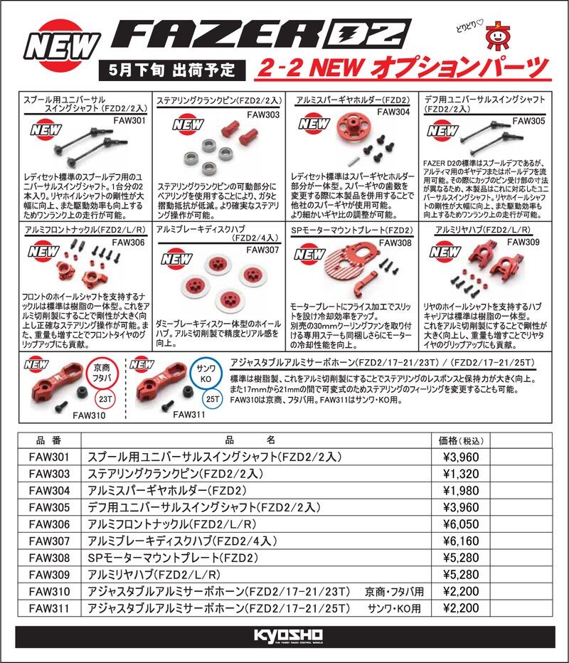 KYOSHO RC Information FAZER D2用 スペア & オプションパーツを発表