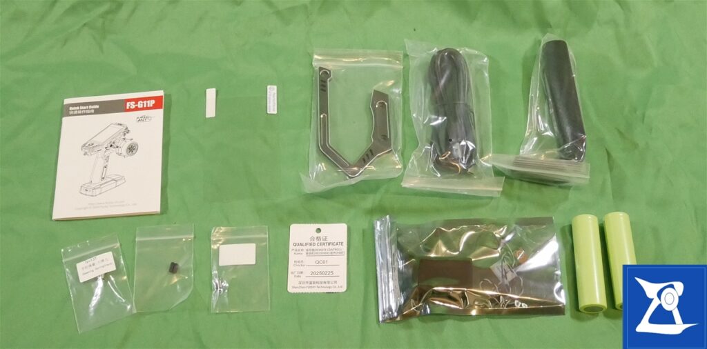 小箱の中には受信機や特別同梱のバッテリー、その他付属パーツやケーブル類などが入っています。取扱説明書も同梱されています。
