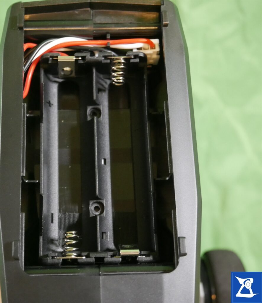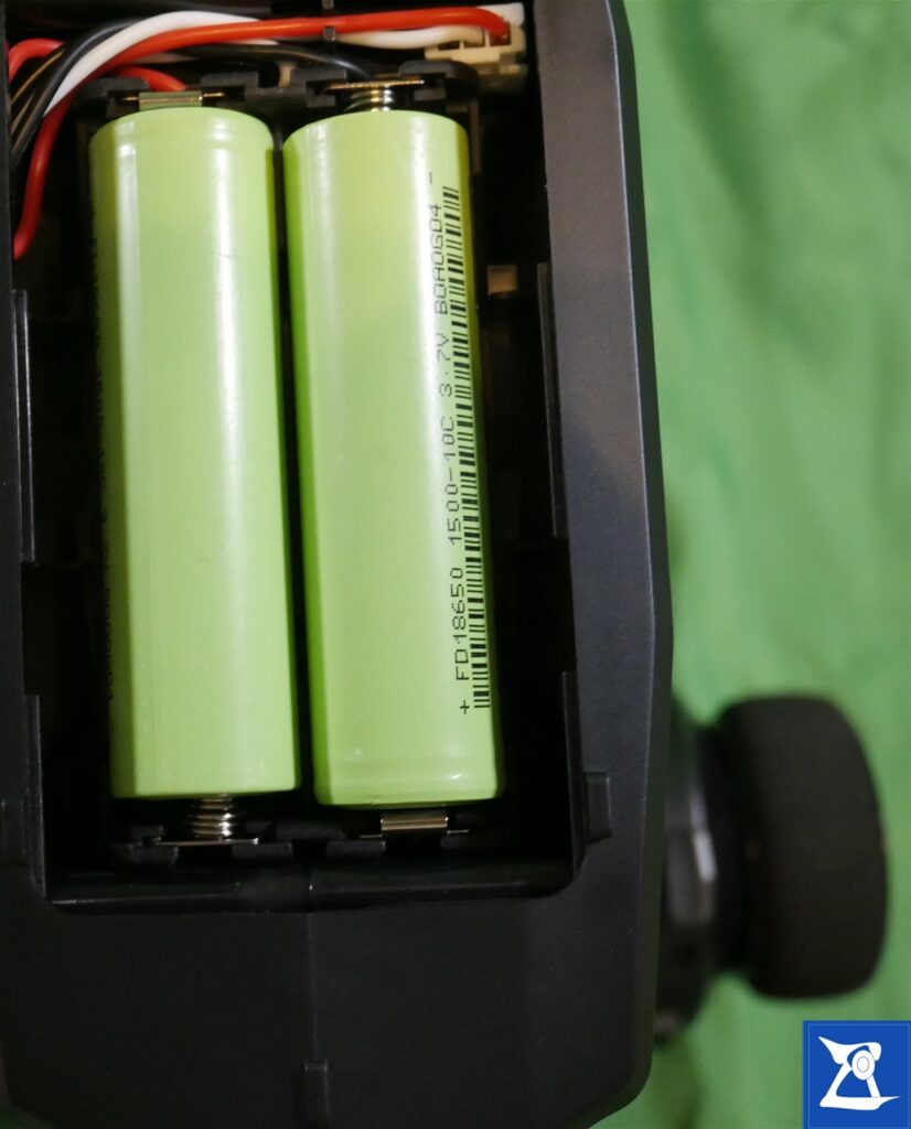 バッテリートレイは今回は初回出荷分同梱の充電バッテリー「18650」を搭載してみます。+とーが分かりづらいの表示をよく見て搭載しましょう。なお、Li-Poバッテリーも搭載することが可能です。