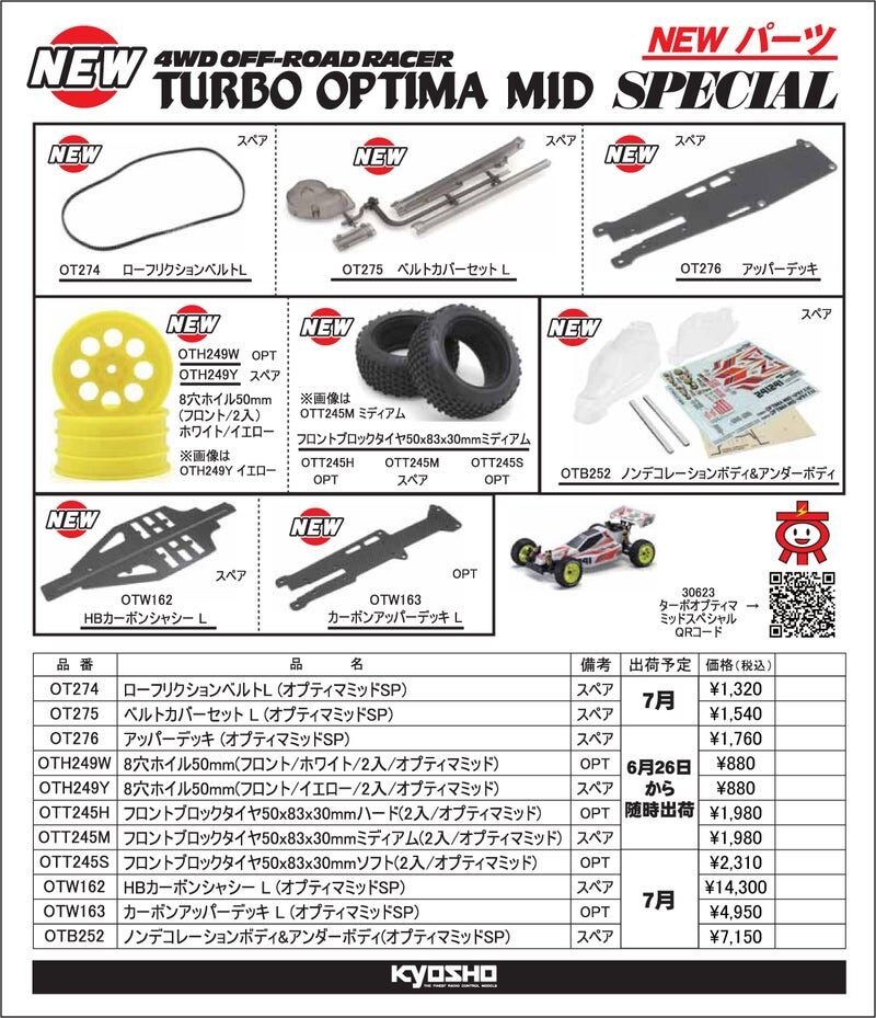 KYOSHO RC Information ターボオプティマミッドスペシャル用 スペア & オプションパーツを発表