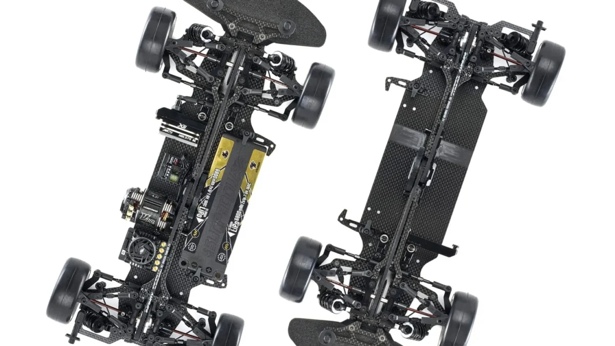 ・モーターマウント剛性調整: シャーシの適応性は、モーターマウントの剛性を1本、2本、3本、または4本の取り付けネジで調整できるオプションを用意。これにより複数の組み合わせが可能となり、各々が路面に合わせてシャーシの応答性を微調整できるように設計されている。