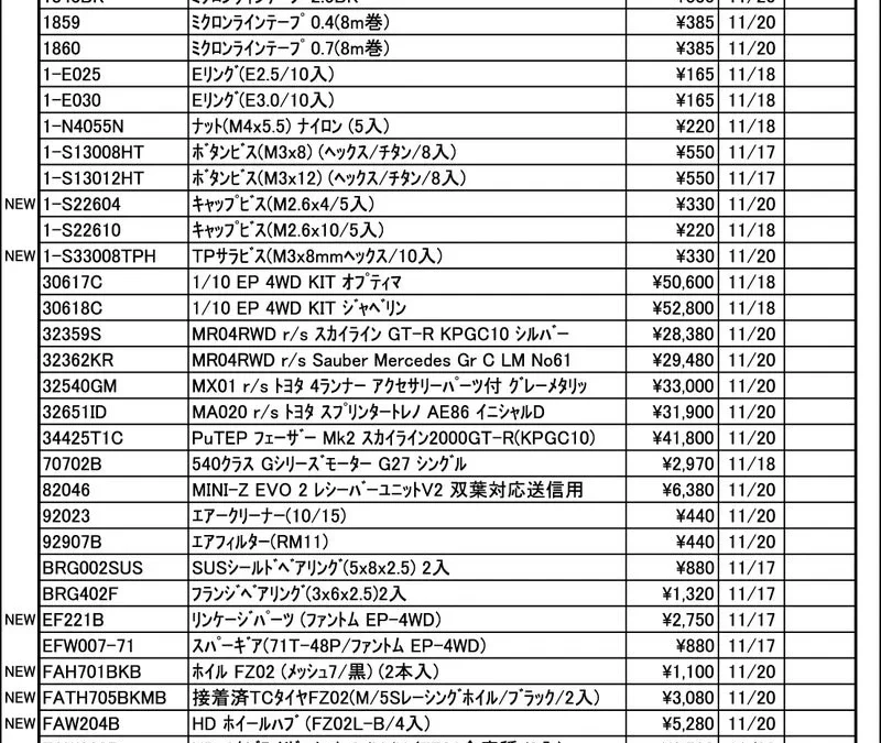 京商株式会社は「今週の出荷情報(2025年11月17日~11月21日)」を発表いたしました。