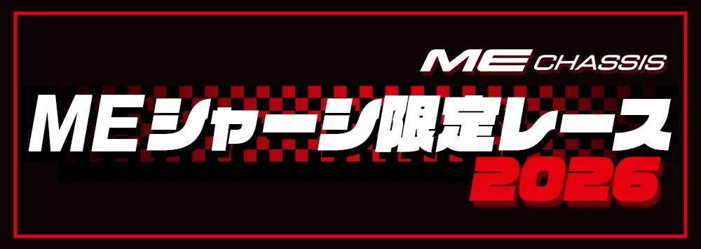 「MEシャーシ限定レース」は、1月発売の新製品「ライザン(MEシャーシ)」に搭載のニューシャーシ『ME』によるワンメイクレースです。参加条件はMEシャーシを使用すること。ボディは「ライザン」以外のものでも参加OK。MEシャーシならではの走りを存分に楽しめる特別レースです。ぜひ参加してみよう!