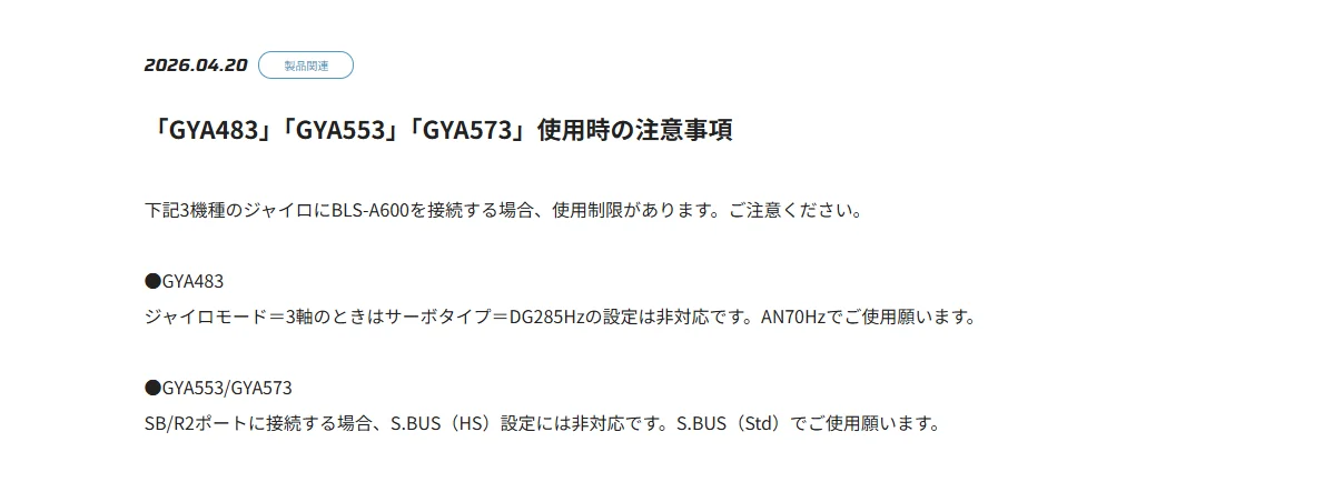 双葉電子工業株式会社は2026年4月20日 同社Webサイトに、「GYA483」「GYA553」「GYA573」使用時の注意事項を公開した。