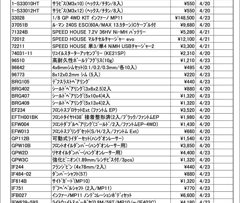 京商株式会社は「今週の出荷情報(2026年4月20日~4月24日)」を発表いたしました。